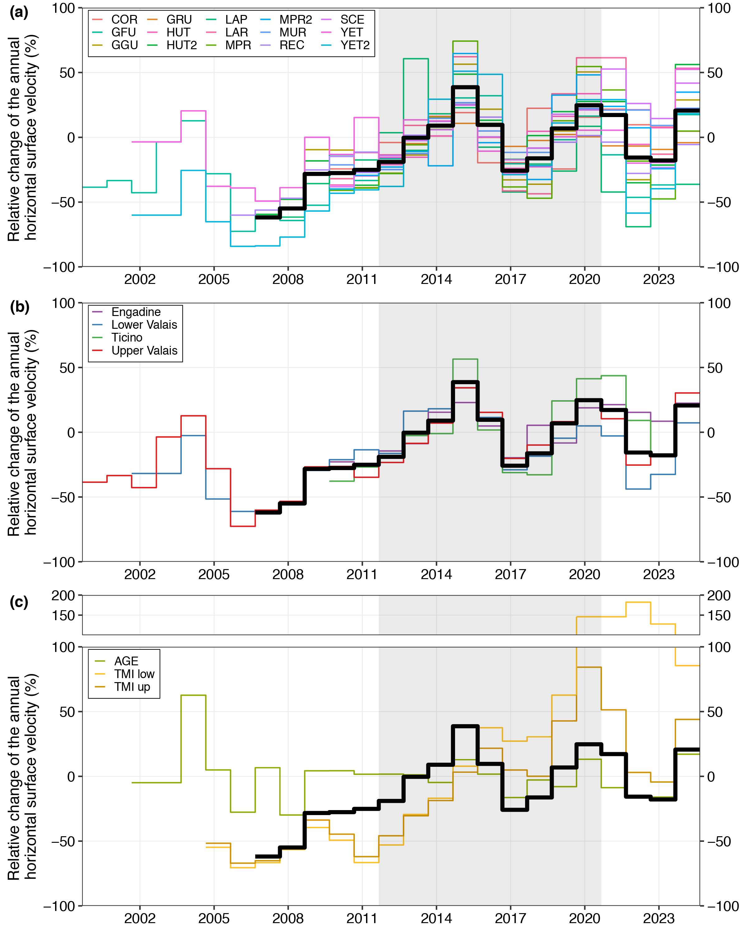 - Kellerer-Pirklbauer, A., Bodin, X., Delaloye, R., Lambiel, C., Gärtner-Roer, I., Bonnefoy-Demongeot, M., Carturan, L., Damm, B., Eulenstein, J., Fischer, A., Hartl, L., Ikeda, A., Kaufmann, V., Krainer, K., Matsuoka, N., Morra Di Cella, U., Noetzli, J., Seppi, R., Scapozza, C., Schoeneich, P., Stocker-Waldhuber, M., Thibert, E., Zumiani, M. 2024. Acceleration and interannual variability of creep rates in mountain permafrost landforms (rock glacier velocities) in the European Alps in 1995–2022. Environmental Research Letters 19, 034022, doi.org/10.1088/1748-9326/ad25a4.